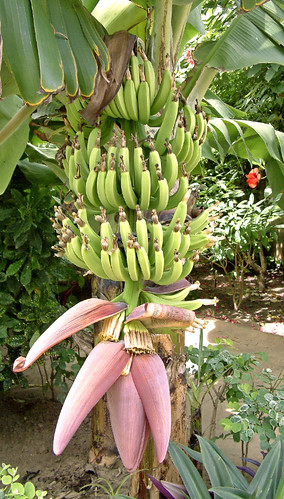 „Banana tree in flower, The Gambia” by Anguskirk is licensed with CC BY-NC-ND 2.0.